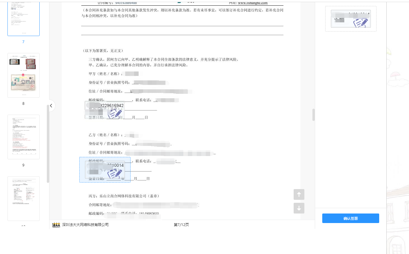 进去后浏览没有问题就点击确认签署
