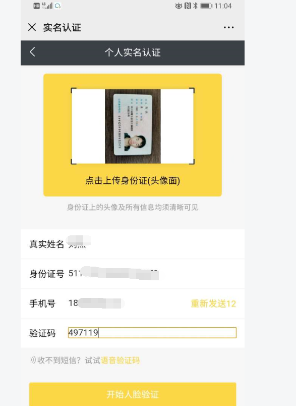 第一步:身份证认证
