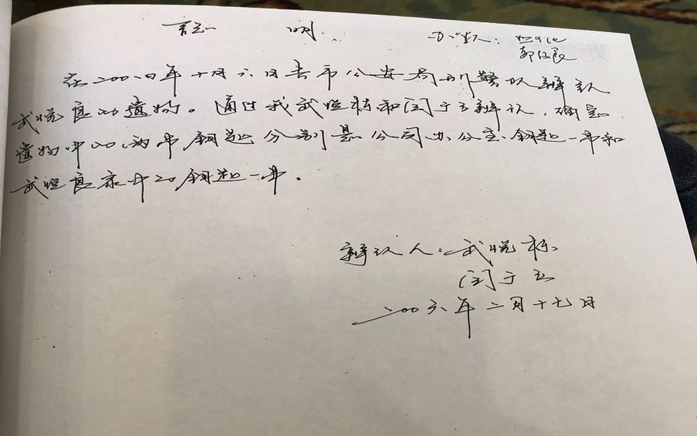 武悦良的尸体被发现后,家属写下的辨认证明。新京报记者 王翀鹏程摄