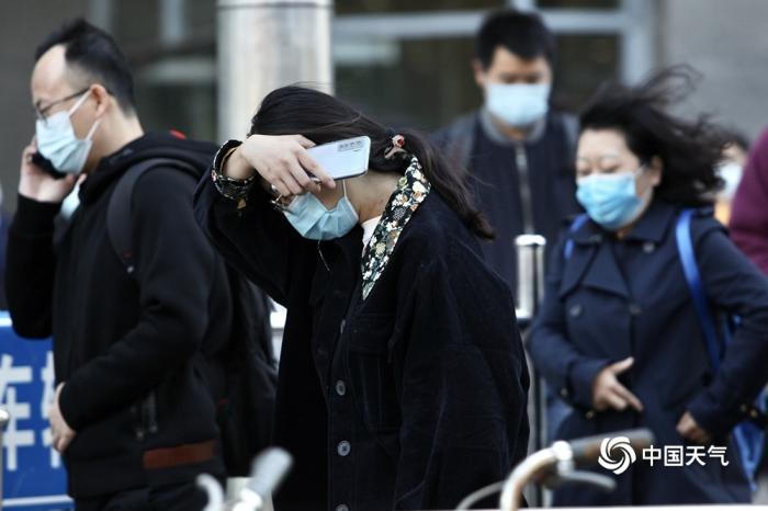 10月21日,早晨北京大风劲吹,街头行人头发随风飞舞。(图/王晓,来源:中国天气网)