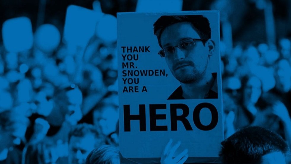 民众举着“谢谢你,斯诺登,你是个英雄”的标语