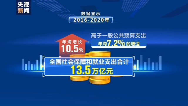 公共财政取之于民、用之于民。数据显示,2016-2020年全国社会保障和就业支出合计13.5万亿元,年均增长10.5%;高于一般公共预算支出年均7.2%的增速。