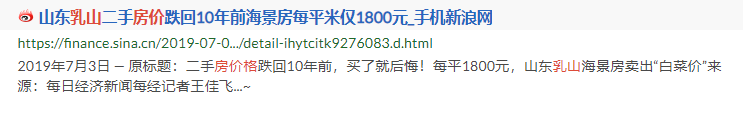 要知道,乳山房子泛滥、白菜价的新闻铺天盖地不是一天两天,而是已经持续十来年了。