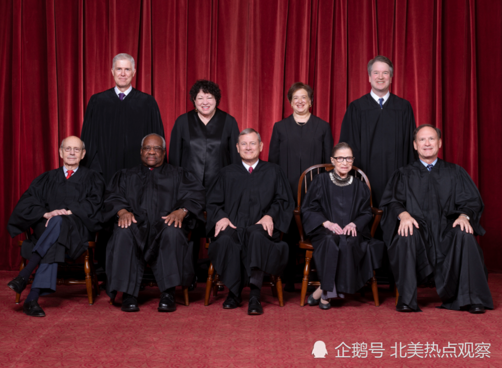图片来源:美国最高法院官网,第一排中间的是首席大法官罗伯茨