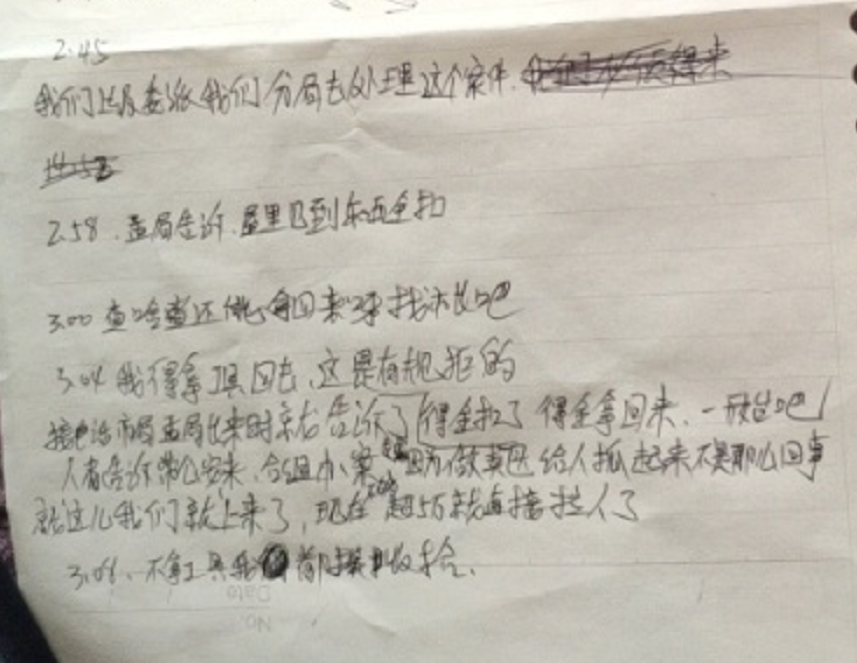 ▲赵某某家属提供的从店铺监控录音整理出的文字