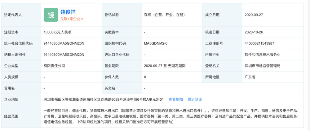 此次的收购方,也不是此前传闻的深圳星盟,而是深圳市智信新信息技术有限公司。企查查数据显示,这家公司成立于 2020 年 9 月 27 日,许可经营项目是:开发、生产、销售:通信及电子产品、计算机等。
