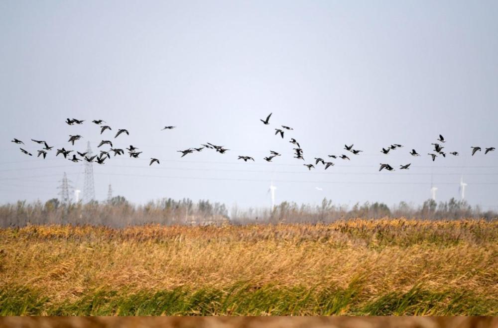 候鸟在七里海湿地上空飞翔(11月3日摄)。本报记者李然摄