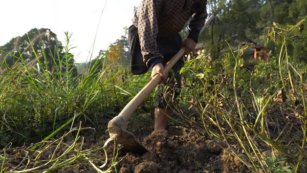 11月1日,范家发单脚立在田地里,两只手紧握锄头,一下又一下,从土里不停地挖出花生。旁边,张丽坐在小板凳上,慢吞吞地摘花生。突然,她尖叫了一声“小勤”。
