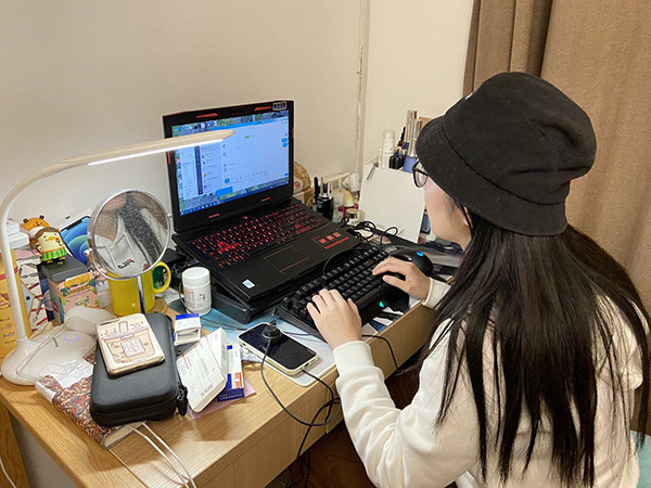 李晓普的夜晚在电脑前度过。 澎湃新闻见习记者 陈悦 图