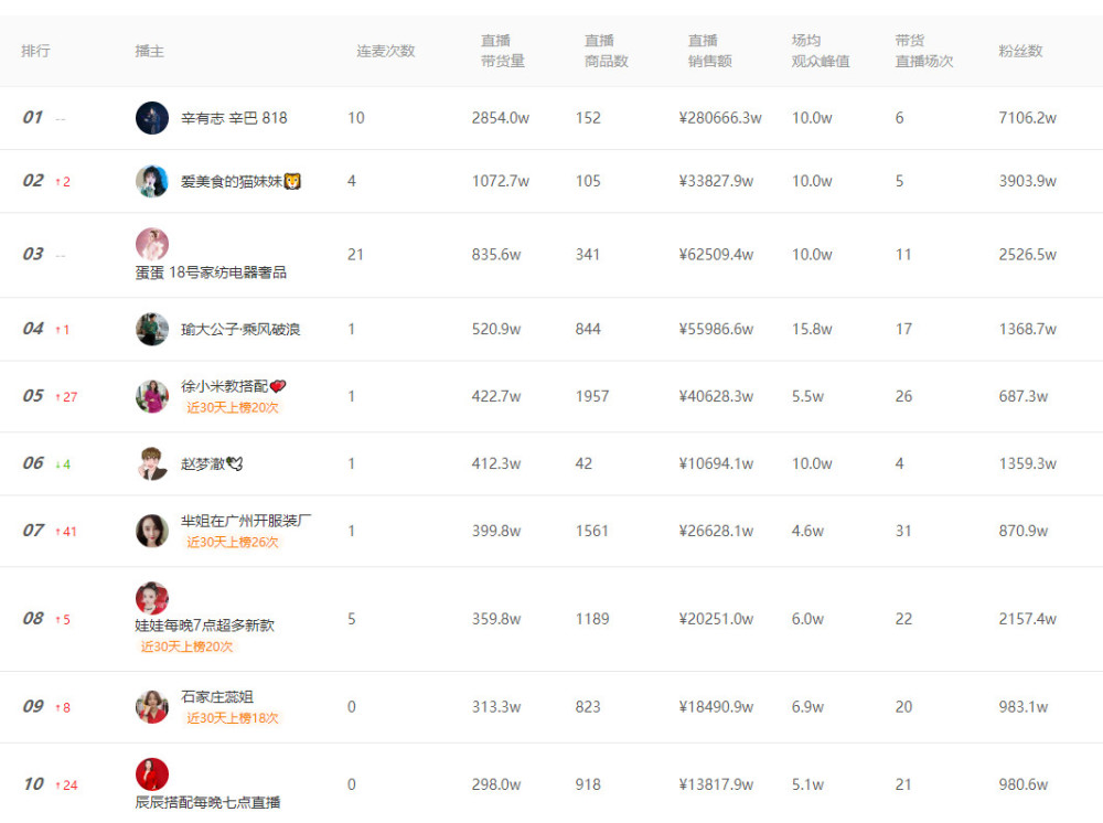 虽然刘涛、张庭的直播带货成绩单屡屡破亿,贾乃亮、陈赫等人的直播成绩单也常在亿元大关附近徘徊,但从整个直播带货行业来看,明星很难对职业主播形成抗衡。