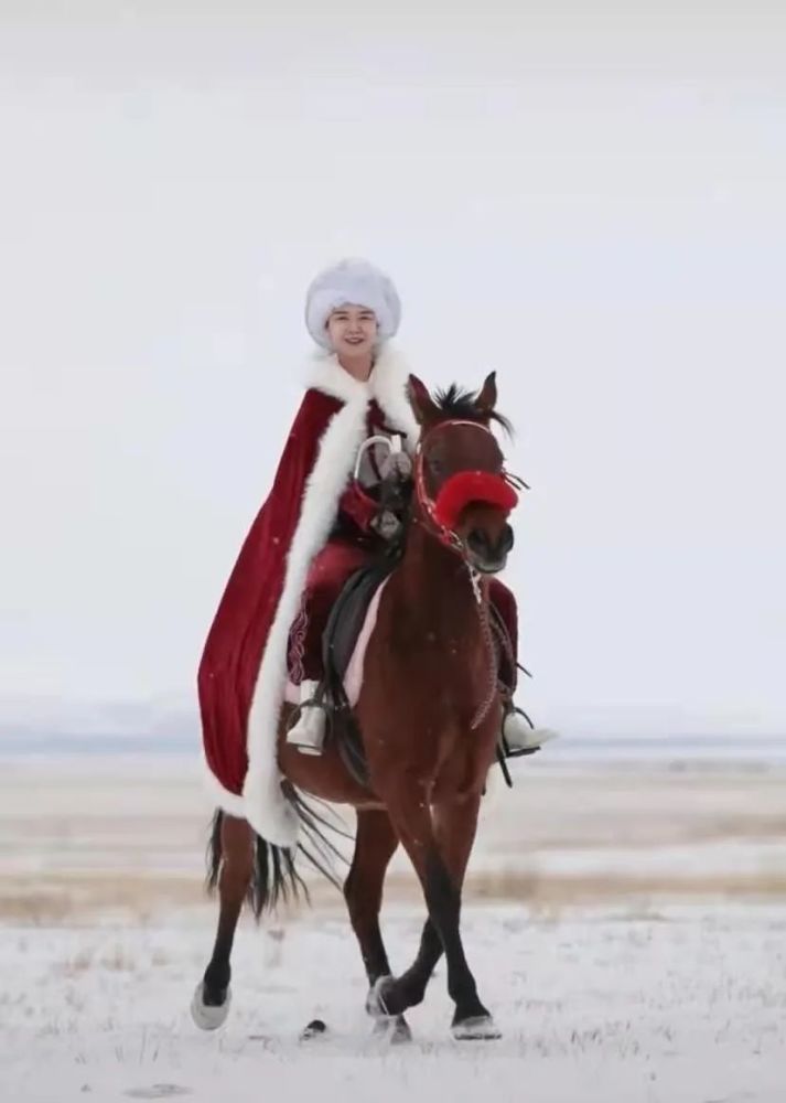 那天我们的拍摄团队也非常希望我能拍一段骑马视频,能增加直播间流量,更好带动农产品的销售。为了迎合推介昭苏的冬季旅游资源推广我就答应了。 但平时工作忙,我只能抽了两个小时的午休时间,断断续续拍摄了三段小视频,三段小视频衔接在一起,组合成了后来的雪地骑马视频。 有的网友发现视频中的马不太一样,以为用了替身,并不是这样的。 还有的网友看到我一直抓马鞍子,马鞍子是安全扶手,拍摄那天气温零下十几度,我穿的不是马靴,是普通的靴子,冻得像冰块,马镫是铁制的,很滑,抓住马鞍更加安全。