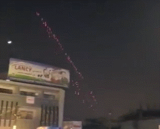 据称是20日当晚火箭弹遭防空系统拦截的视频 来源:国外社交平台