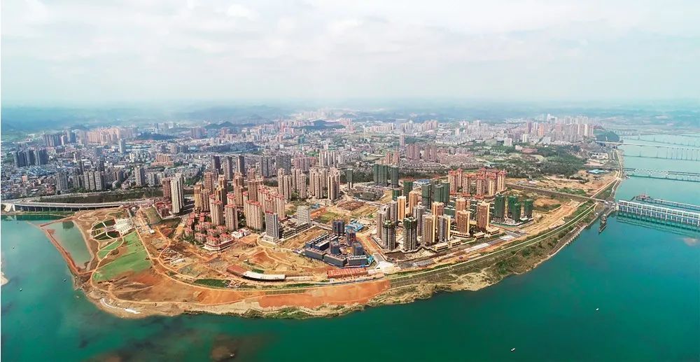 (2019年4月,建设中的南充市清泉坝。清泉坝有1619.36亩集体土地被确权为国有河滩地,其中部分已进行过开发建设。图/南充市自然资源和规划局)