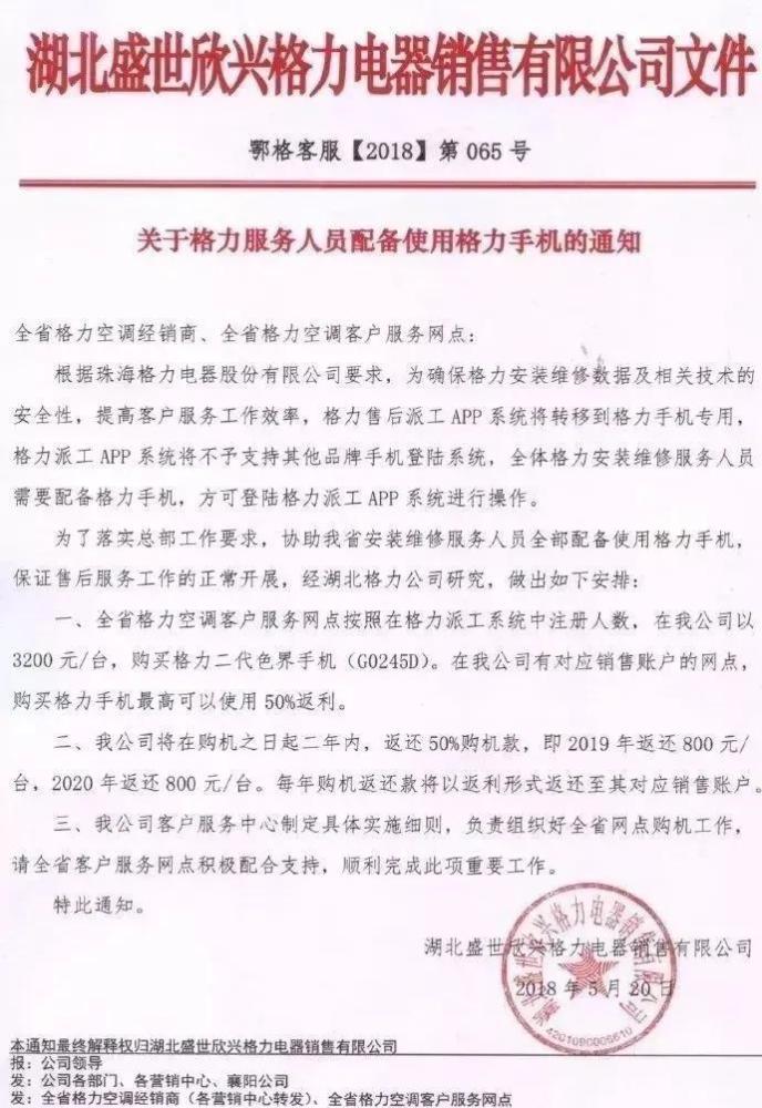 除员工外,格力手机也曾被“捆绑销售”给采购空调的供应商,并强行“安利”给安装工人,否则就无法正常登录系统接收工单,令后者直呼“用不起”。