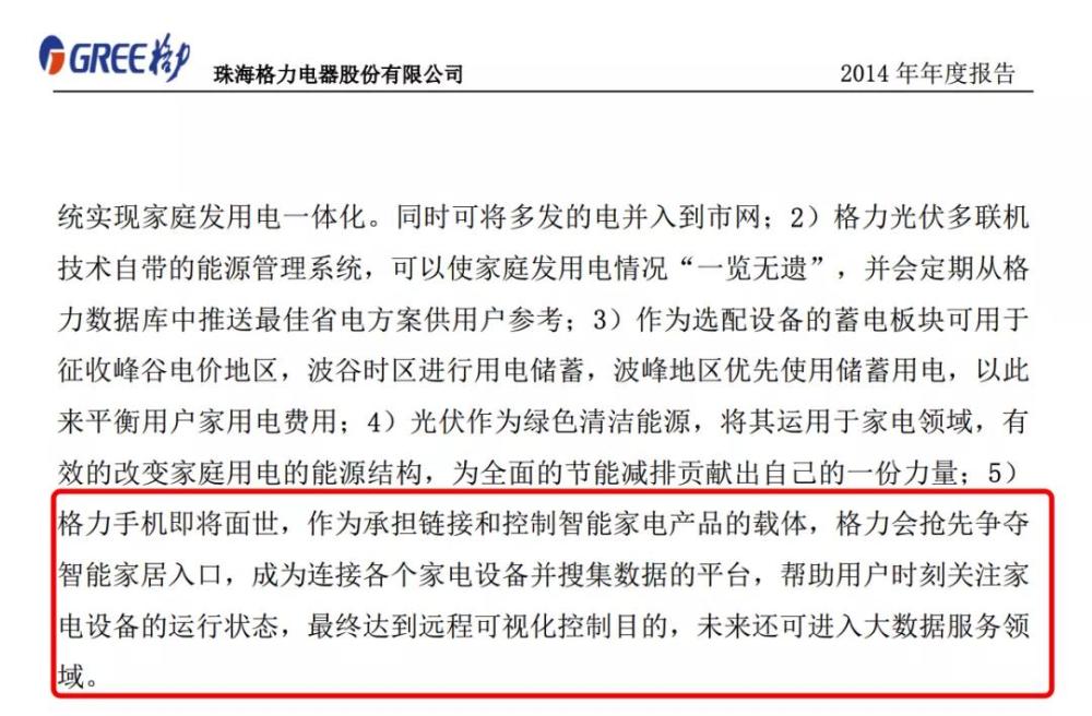 早在2014年年报中,格力便表示未来会进入智能家居领域,而且会以格力手机作为连接智能家居的中心。