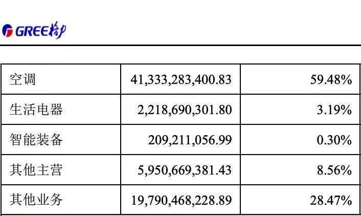格力电器营业收入构成分产品占比,图源:2020年半年度报告