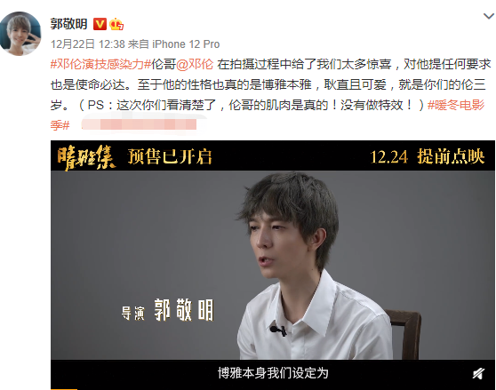 22日晚郭敬明还带着赵又廷、邓伦做客薇娅直播间,当天郭敬明的心情非常好,看起来根本没有被一百多名影视从业者联名抵制一事影响,在直播间侃侃而谈,邓伦赵又廷更是夸自己演得好,自信满满。