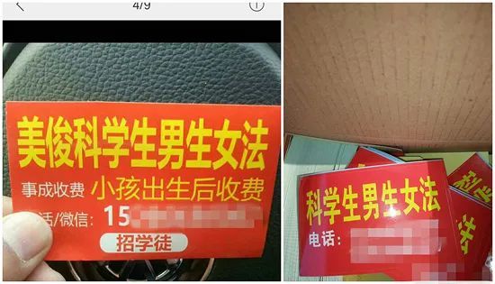 王兴玲在河南省妇幼保健医院里,经常会在卫生间、病人候诊区看到“包生男孩”“试管代孕”的广告,有时候出现在电梯里,或者用刀刻在墙上。“我们卫生员天天清理,防不胜防。他到我们这儿宣传,就是想把我们的不孕症病人抢走。”