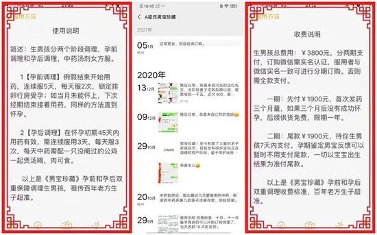 他的微信朋友圈里展示了2020年来自广西、上海、四川等近20个省份的购药者成功生下男孩的案例。他告诉记者,有差不多1000人在微信上买过他的药,多是80后、90后,“九成肯定是成功的(生了男孩)”,药材为“纯保健中药材”,但他无法解释药物原理。