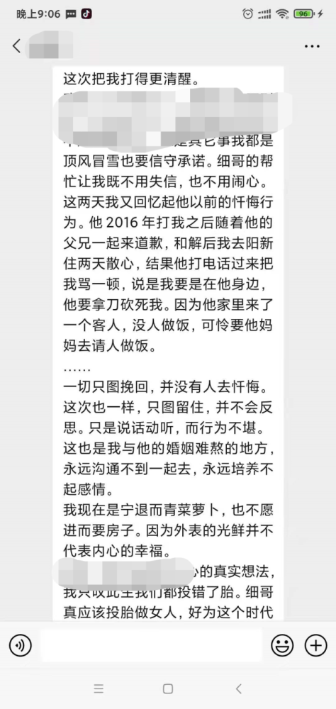 小芳被家暴后,曾经发给哥哥的微信