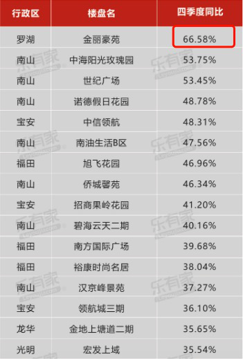 但从数据看,上述热门学区房都没上榜,上榜的top 1年涨幅超过66%。近期,乐有家统计了50个深圳关注度较高楼盘2020年四季度成交价格的同比涨幅。其中,罗湖的金丽豪苑涨幅高达66.58%,南山的中海阳光玫瑰园与世纪广场涨幅也超过了50%,前十名涨幅均超40%。