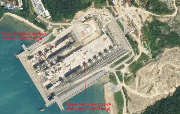 文章称,新设施于2016年开始建设,如果确认为海军干船坞,那么其将足够长,足以容纳和停泊航空母舰以及驱逐舰和巡洋舰编队。新设施正在三亚以东的榆林海军基地进行建设,该基地已经拥有包括航空母舰、常规潜艇和核动力潜艇在内的所有计划船只的停泊设施。