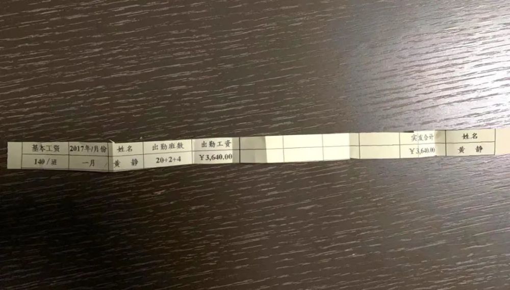 黄静2017年一月份的工资条。