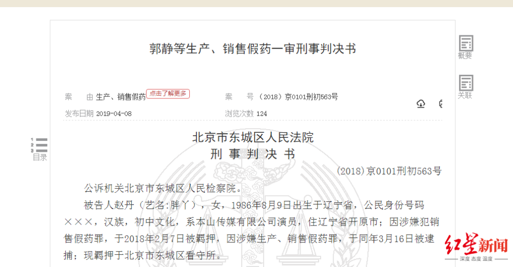 此前据《北京青年报》报道,2019年4月18日,本山传媒有限公司演员赵丹(艺名:胖丫)与郭静在映客平台的直播中售卖假冒减肥药,犯生产、销售假药罪,分别被判处有期徒刑3年与1年。