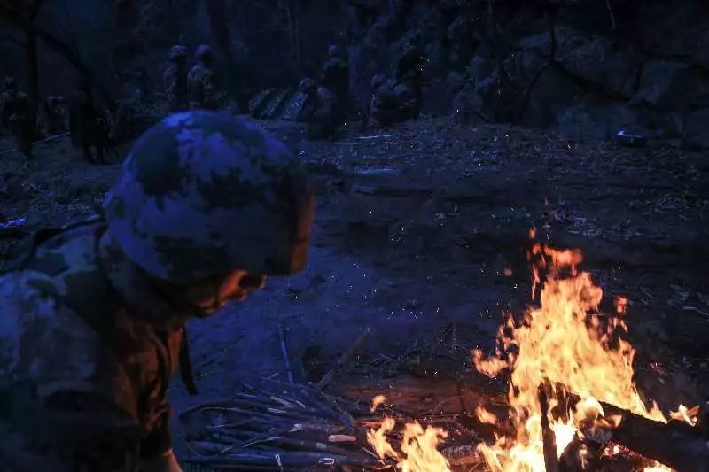 2018年1月9日,西藏自治区,山南军分区边防某营官兵在生火驻扎。