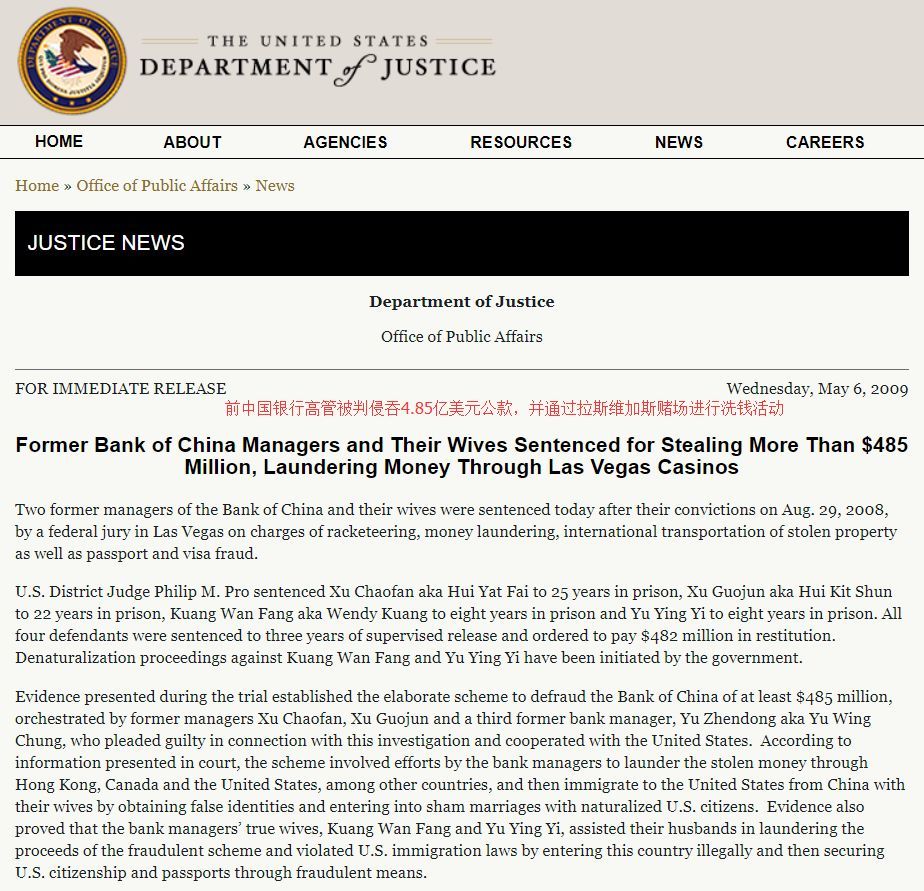 美国法院的判决(图片来源:美国司法部官网)