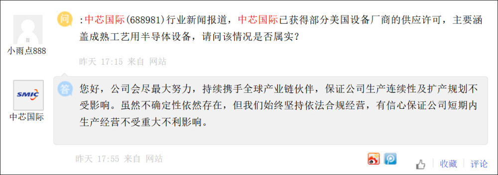 3月2日,有投资者在互动平台“上证e互动”向中芯国际求证上述事项。