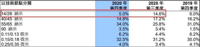 2020年四季财报显示,该公司14/28nm工艺占比为5%,40/45nm和55/65nm工艺的占比接近50%。