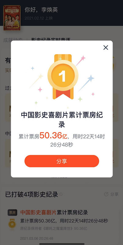 《你好,李焕英》票房超《哪吒》,位居中国影史第二