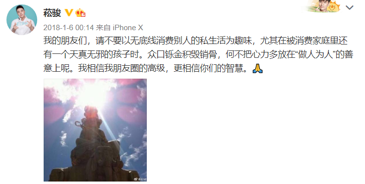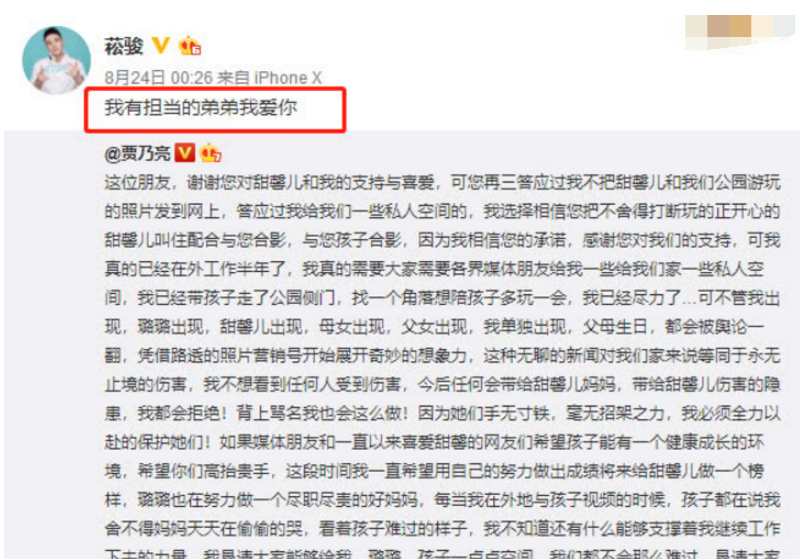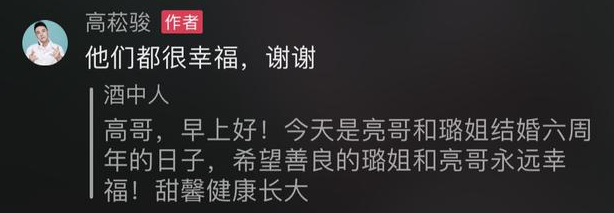 再比如在2018年7月有网友向李小璐贾乃亮送祝福,高菘骏直接就回复“他们都很幸福”。