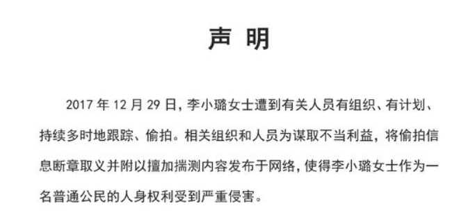 2019年11月,李小璐曾在个人社交账号上发表了一篇长文诉说自己受到的伤害,并表示自己遭到了威胁勒索。