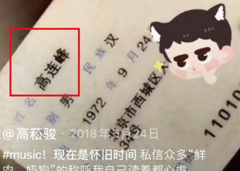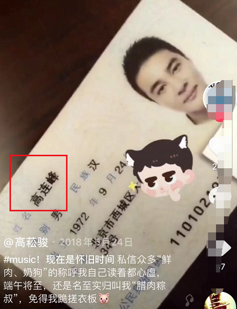 首先要明确一点的是,高菘骏曾经在短视频中晒过自己的身份证,而他在身份证上的名字叫做高连峰。
