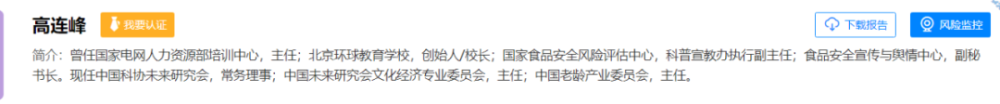 也就是说,从2006年开始,高连峰的身份就从环球教育学校的负责人,变成食品安全研究中心的前秘书长,从搞教育的变成搞食品安全的,这跨度实在有点大。