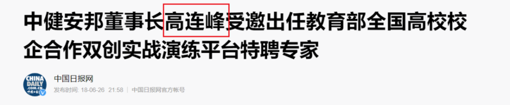 高菘骏(高连峰)现在的身份是中健安邦的董事长,而根据相关新闻报道,他这个身份应该是真实存在的。