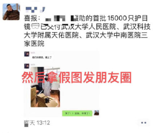 但好歹,这些都应该是他真实拥有的,还有些人设则完全来自于捏造。2020年2月,因为疫情原因医护人员的护目镜紧缺,高连峰,也就是高菘骏宣称自己向医院捐赠物资,却被人发现其实是盗图。
