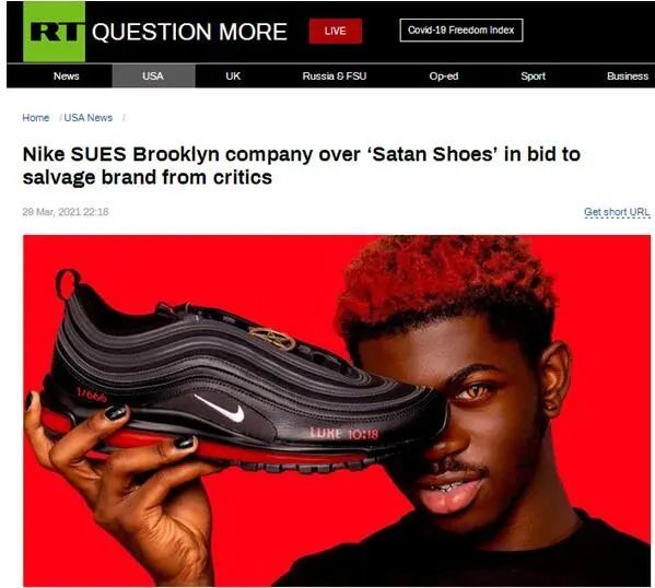 RT:耐克起诉(位于纽约)布鲁克林公司的“撒旦鞋”,试图从批评中挽救品牌