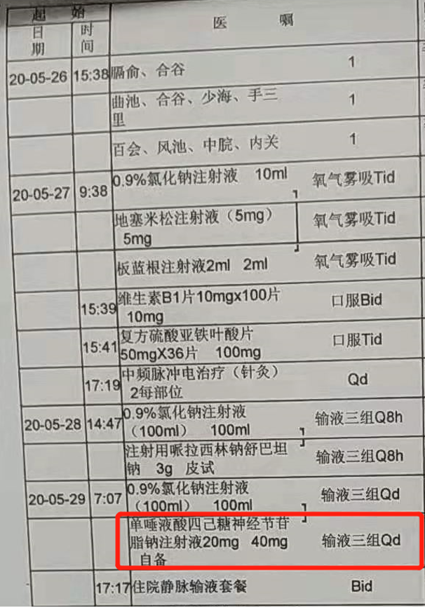 但是父亲在出现症状后,当地医院不仅并没有停药,仍然继续注射了2天。